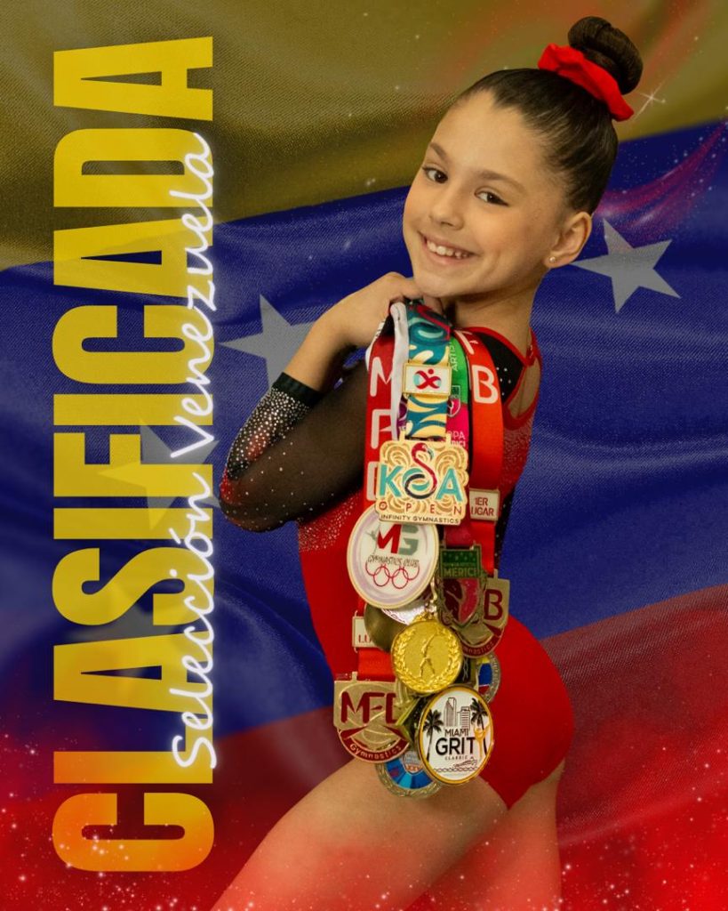 Con tan solo 9 años de edad, la destacada gimnasta carabobeña Eglantina Sanz Pérez representará a Venezuela en la Copa Panamericana Infantil y Juvenil de Gimnasia Artística, a realizarse en El Salvador, del 3 al 9 de noviembre de 2025.