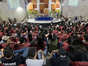 Con un lleno total del Teatro Dr. Alfredo Celis Pérez, la rectora de la Universidad de Carabobo, Jessy Divo de Romero y el decano de